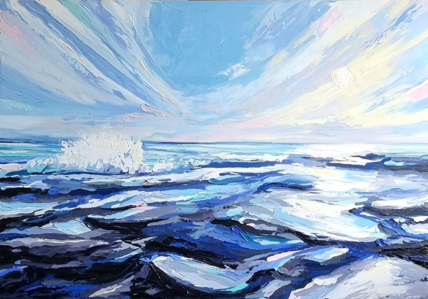 I love that my painting connects me to the west coast of Clare and all the happy memories I have by the sea. Looking at it in my kitchen every day brings me such a sense of joy and calm and the painting has received so many compliments. I also love that you spent the time to consider the colours used in my kitchen so that the piece compliments the cabinets/light fittings etc perfectly.