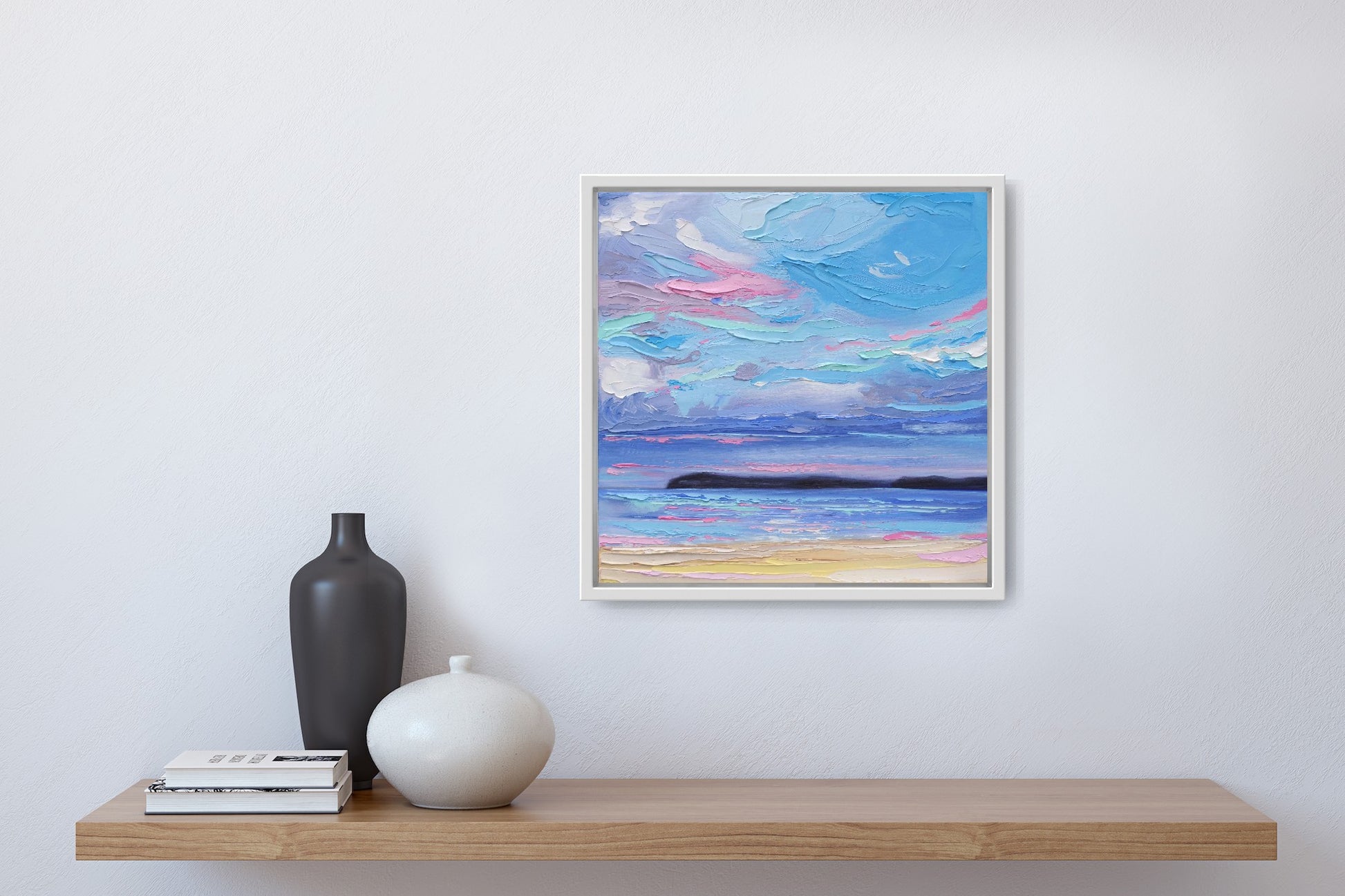 12" x 12" (30cm x 30cm) on a slim canvas, unframed.