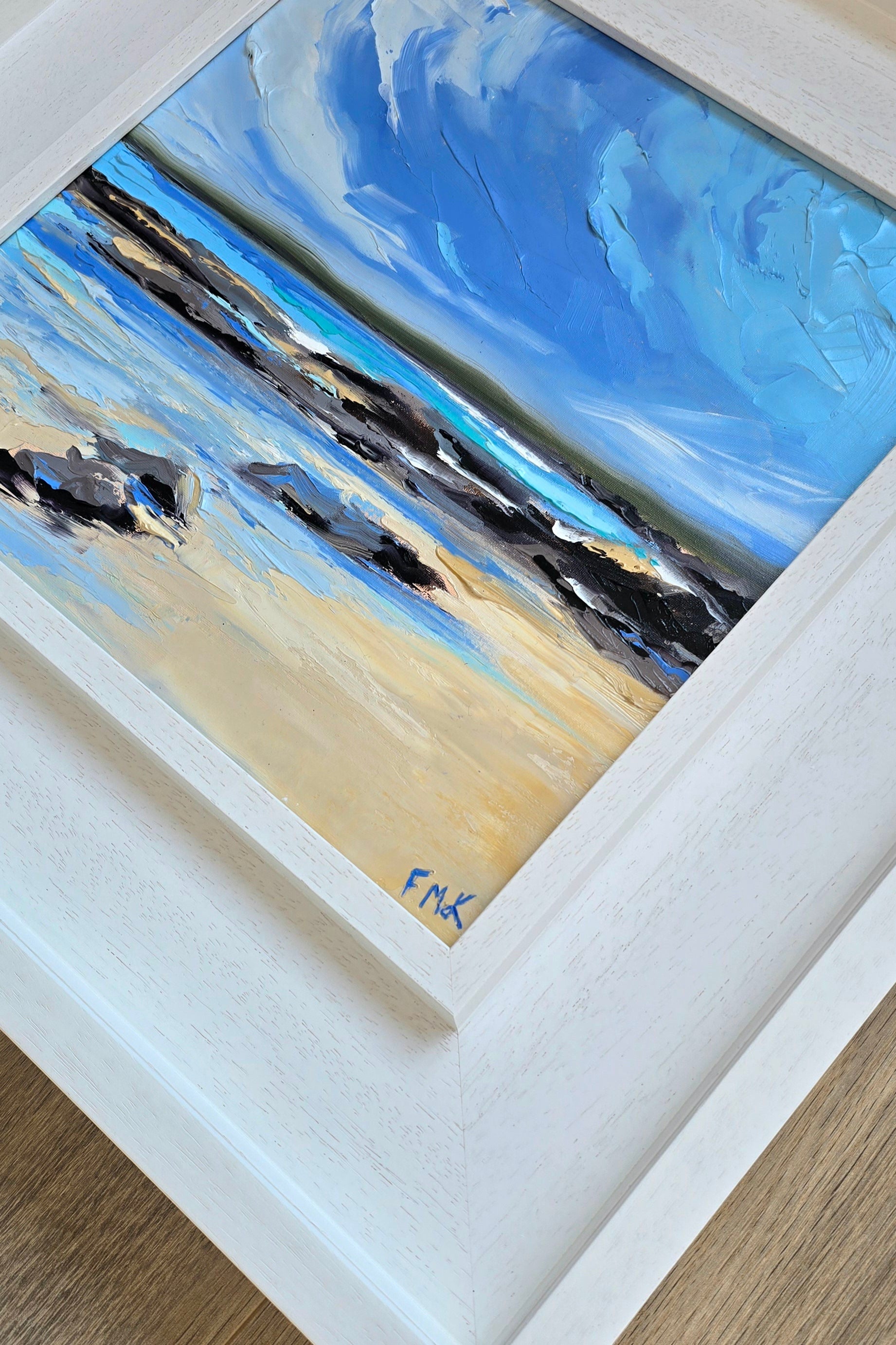 A gentle celebration of the shoreline, where the Atlantic laps softly against the sand. Inspired by summer along the Connemara coast, this piece captures the rhythm of the waves, the lightness of the water and Atlantic blues.