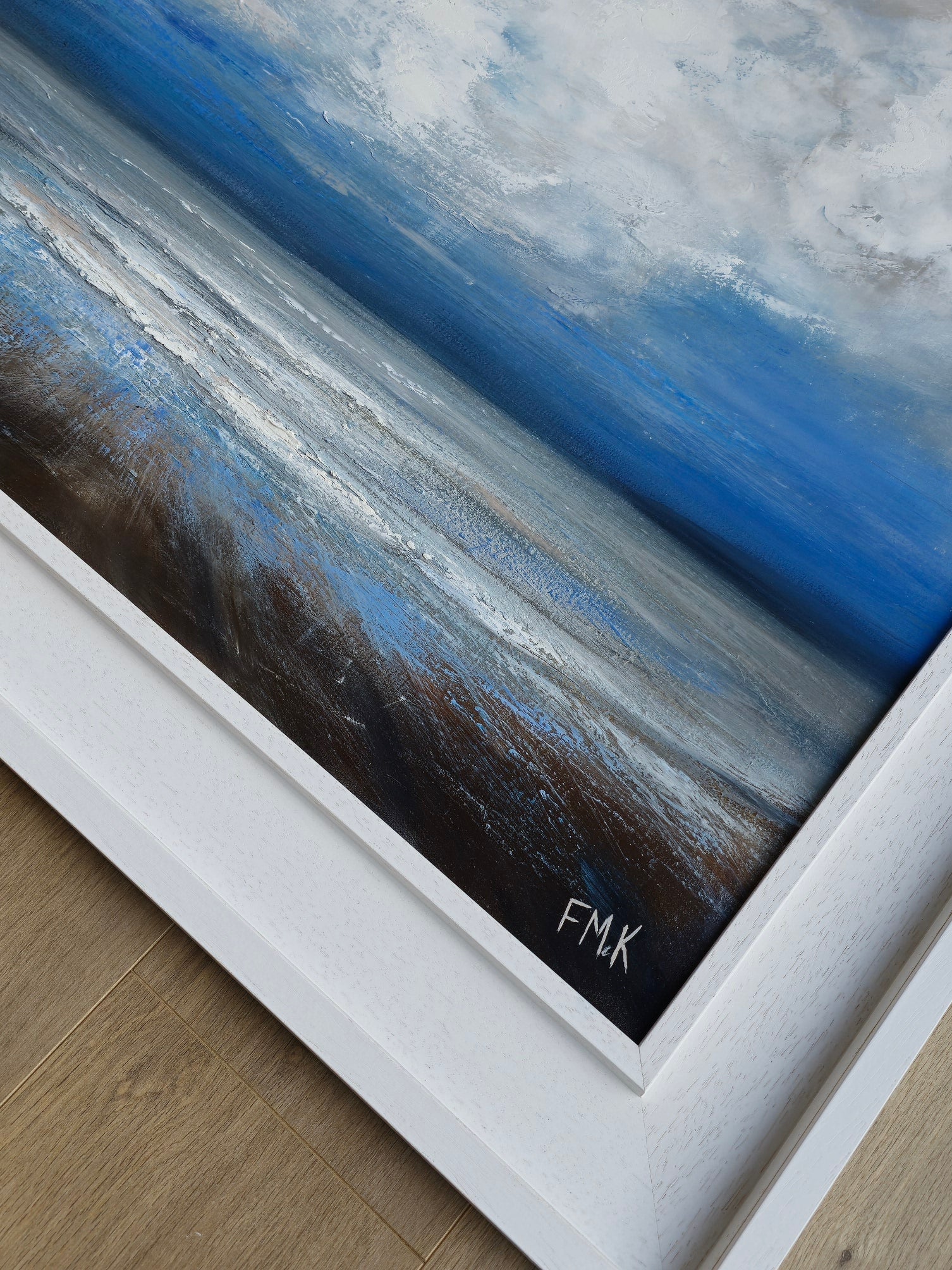 'Echoes by the Cloudy Shore' captures the rugged beauty of the west coast of Ireland. There's energy in this painting, which is both calming & restoring. This piece is perfect for those who enjoy both reflecting on memories and cherishing quiet, peaceful moments. Walking along an empty beach with the clouds sweeping above while the light finds its way through.