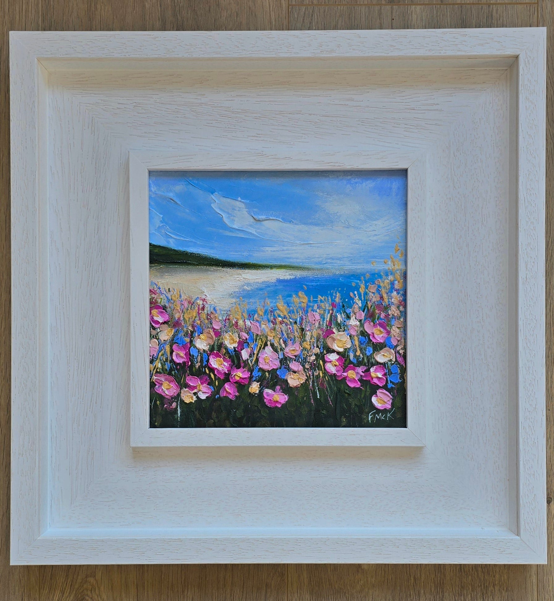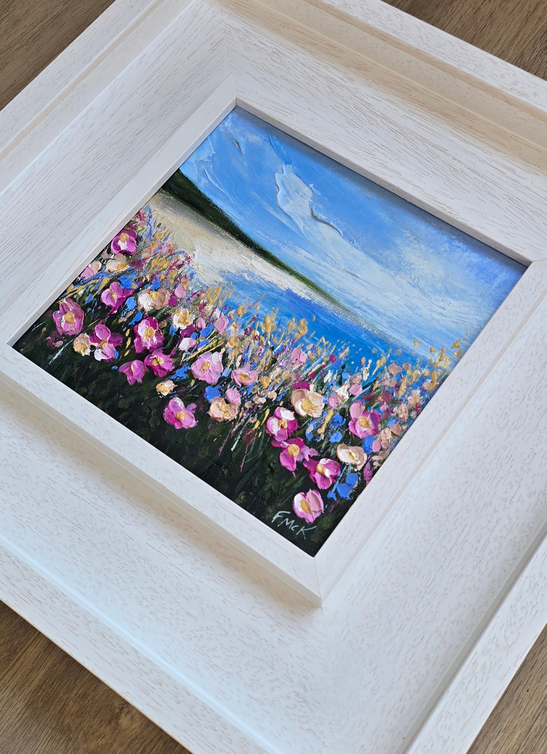 Inspired by the Irish coast in bloom, this piece depicts a gentle shoreline with wildflowers in the foreground - capturing the warmth of summer and a breath of sea air.