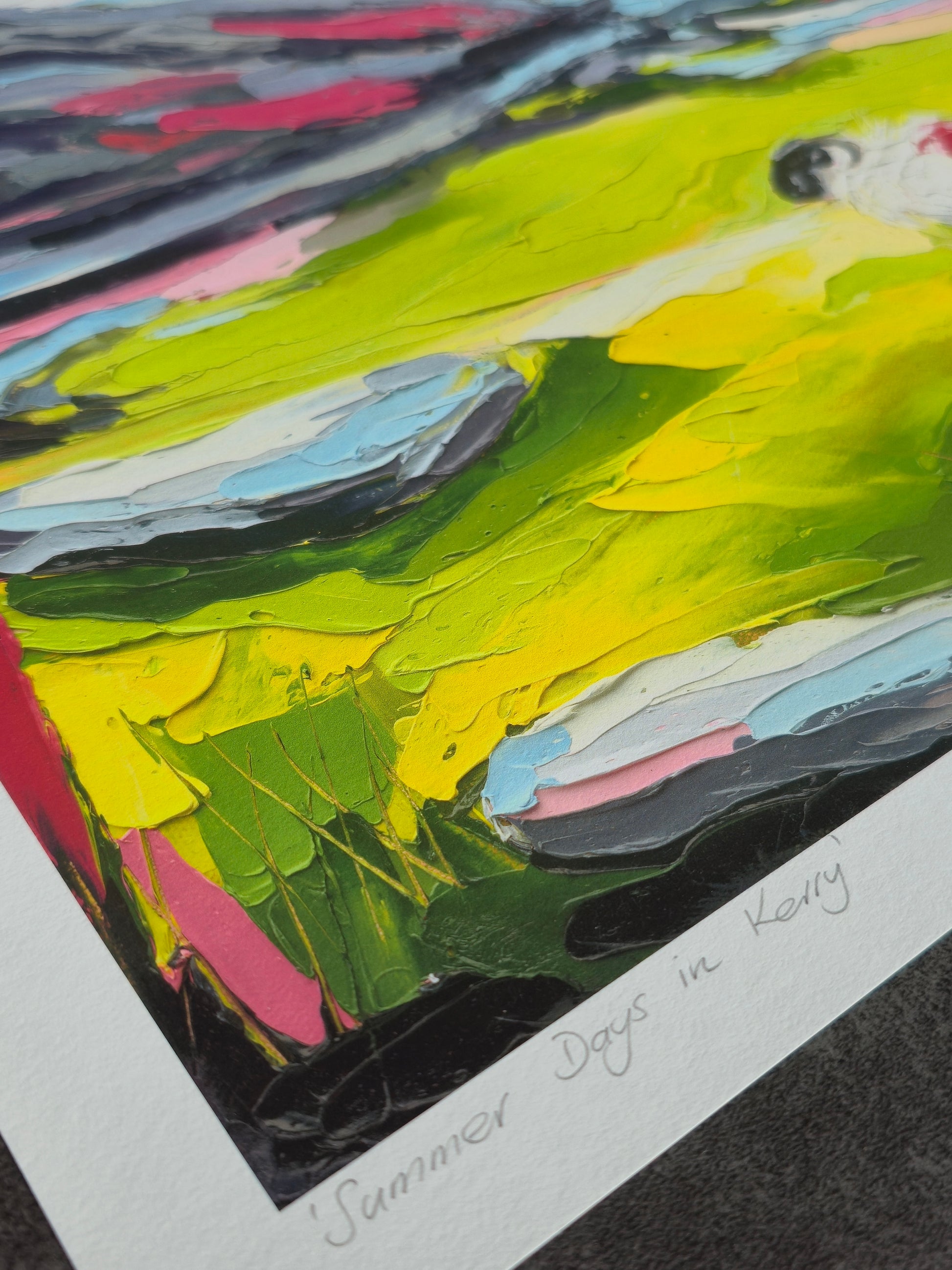 'Summer Days in Kerry' depicts the stunning beauty of Moll's Gap in Co. Kerry. The vibrant and bright colours represent uplifting feelings and memories. Whether reminiscing about the past, or dreaming of the future, 'Summer Days in Kerry' encapsulates a spirit of discovery and joy.