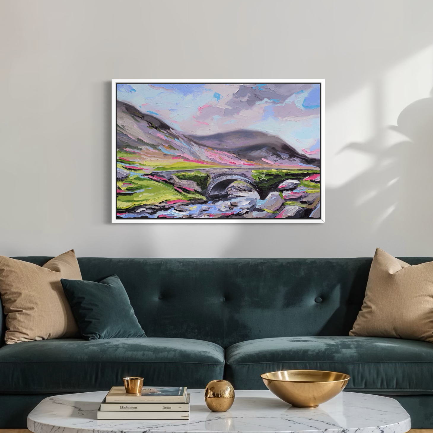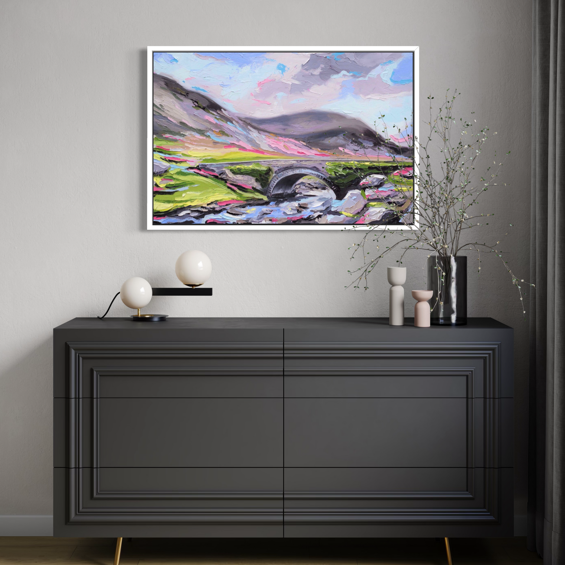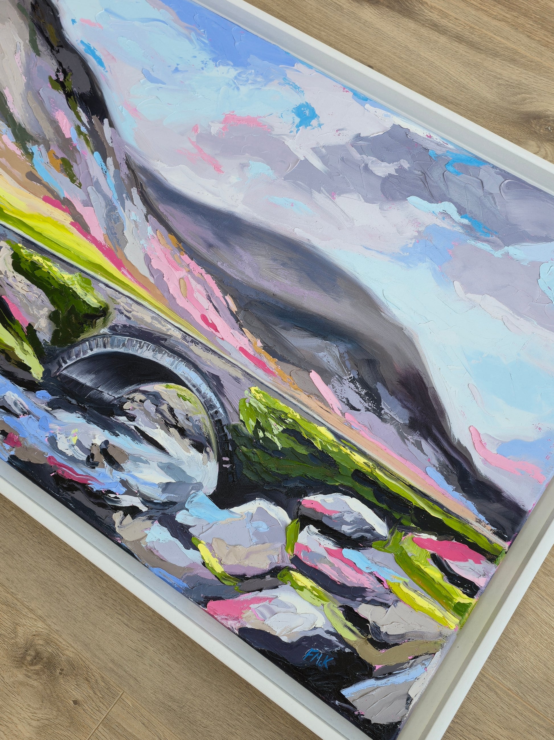 The Wishing Bridge is said to grant wishes to those who cross it, adding a touch of magic to its charm. This piece evokes the timeless serenity and wonder of one of Ireland's most beloved landscapes – a place where cherished memories are made and dreams take flight.